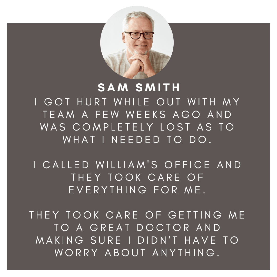 When you call William's office, you'll talk with our highly professional and experienced staff. They'll get you scheduled for a free consult with William to discuss your case.